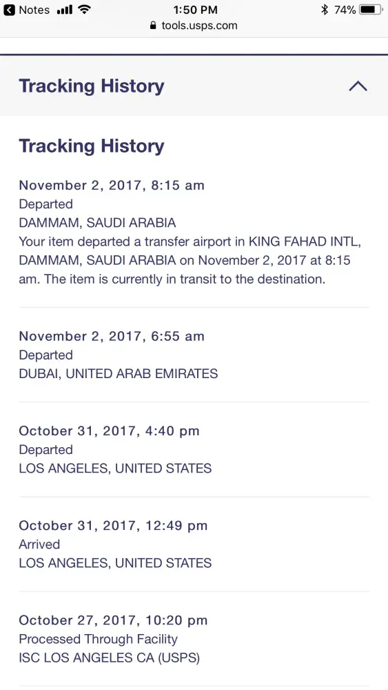 My package from USA is shipped october 26, 2017 by USPS and the last update was november 2, 2017 it was in dammam Saudi arabia, with tracking number UM094391373US. Until now it did not reach riyadh and i cant search it in saudi post website. What happened? Cant contact anyone in dammam post office. Its missing! Please try to find it. Thank you so much.