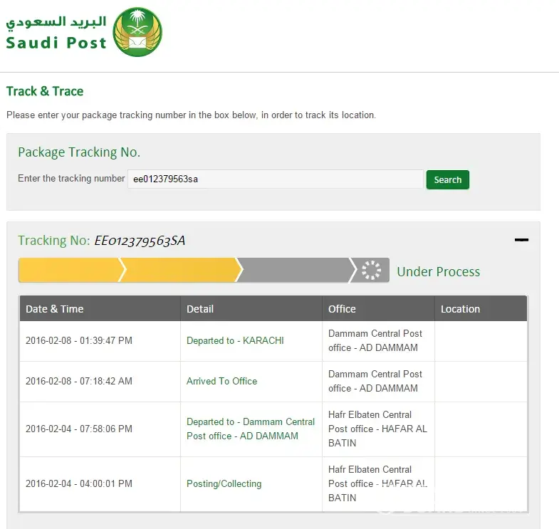 Posted on 2016-02-04, at hafr elbaten central post office hafr al batin, eastern region, saudi arabia still document is held at dammam central post office - ad dammam tracking number of the courier: ee012379563sa receipt number of the courier: [protected]. no reply no action to date on my complain. so I request you to please look into the matter because it is very important documents. and deliver the document at earliest. thanks & regards hafiz rashid
