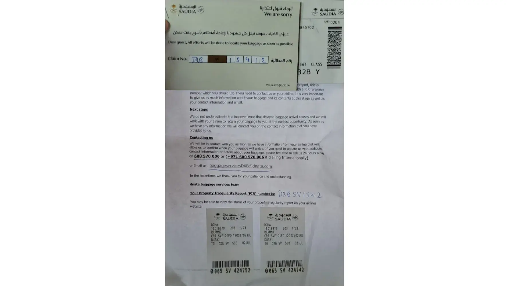 My baggage was lost on 2nd July, My bag didn't arrive with us on SV550 to DXB.