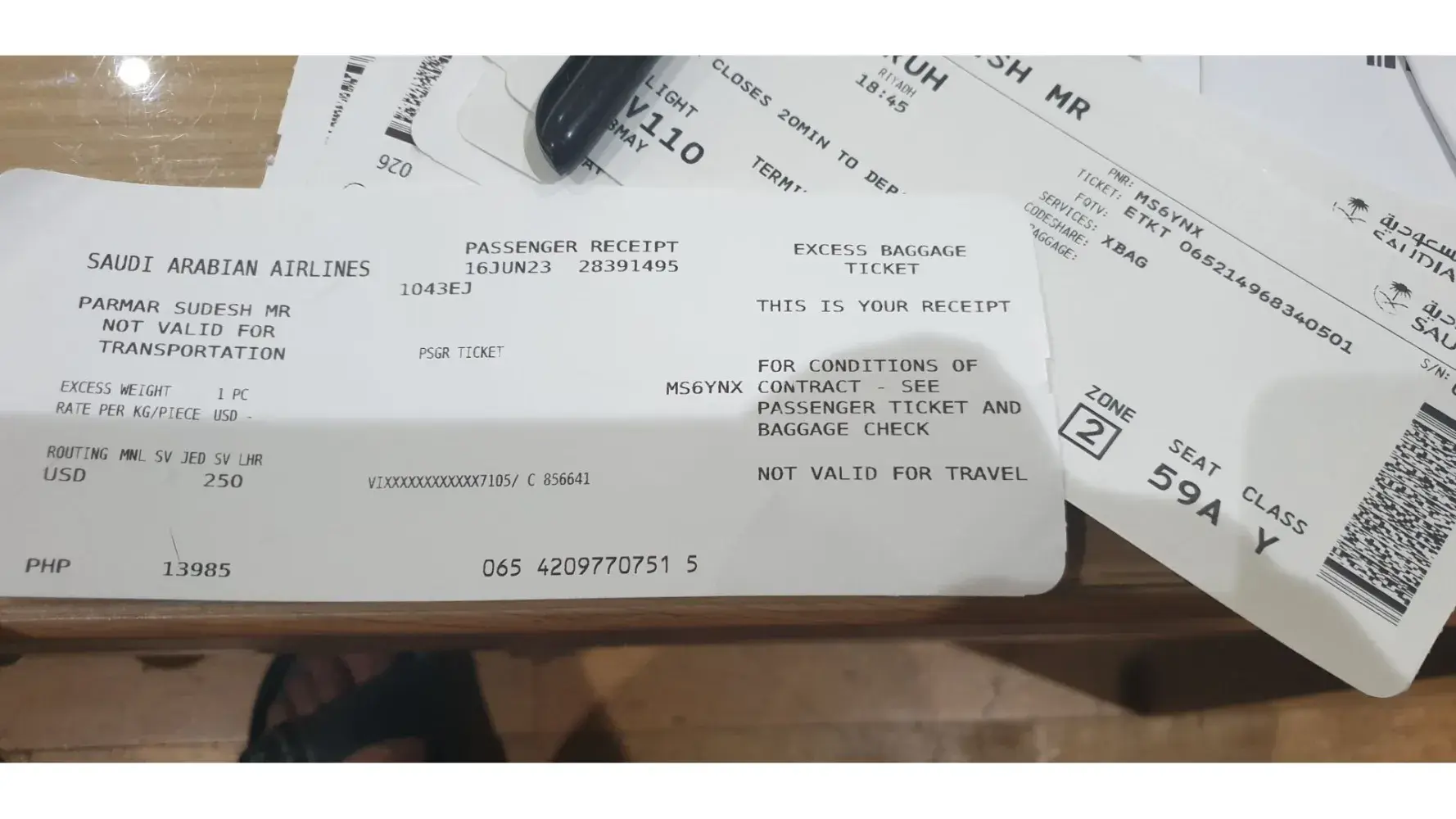I tarvelled from lahore to London by Saudi airline on 03-09-2023 via LHE-JED SV739 and JED-LGW SV719.