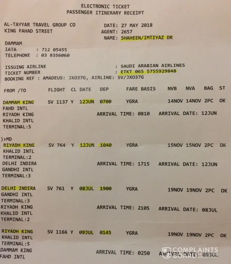 BUT ACCORDING TO OUT TALKS WITH AIRLINES THEY ARE NOT TAKING CARE OF WHAT THEY HAVE SAID IN THE CONTRACT. THEY ARE IN BREACH OF CONTRACT. According to them, they are not operating from Riyadh/Jeddah to Delhi. But they have not contacted any of their partnered airlines in Jeddah/Riyadh to help us reach back to DELHI, INDIA.