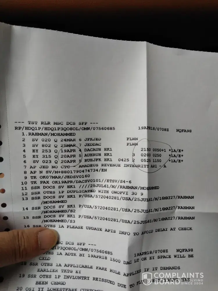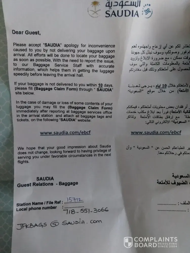 Saudia Airlines please heed my concern immediately.
