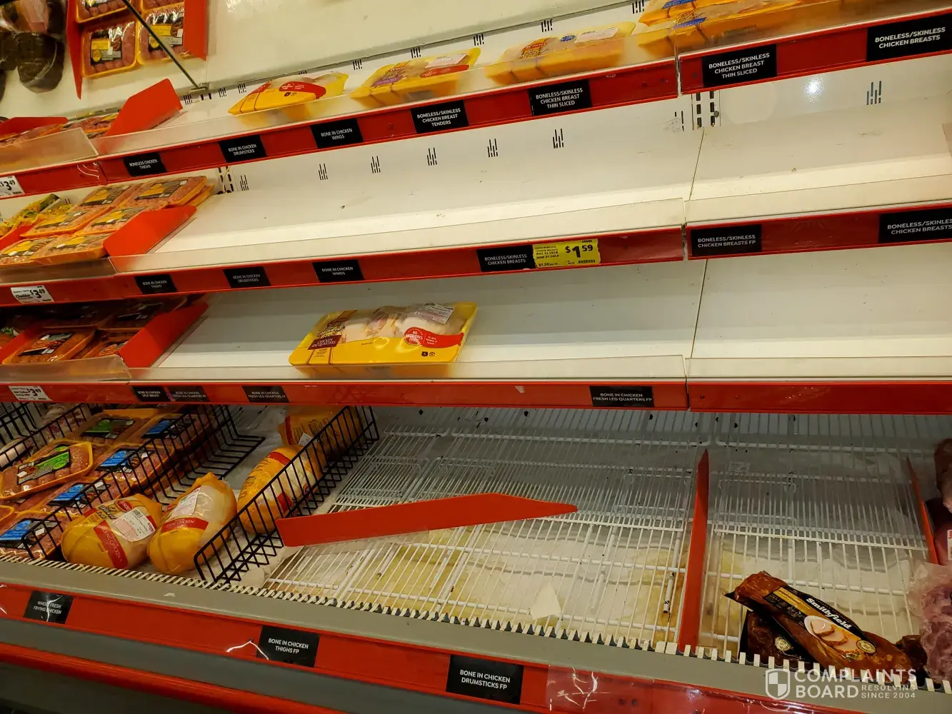 The meat is frozen when you buy it(chicken).I have also had to return spoiled meat. The frozen foods are falling apart and molded. I had also informed to different managers.