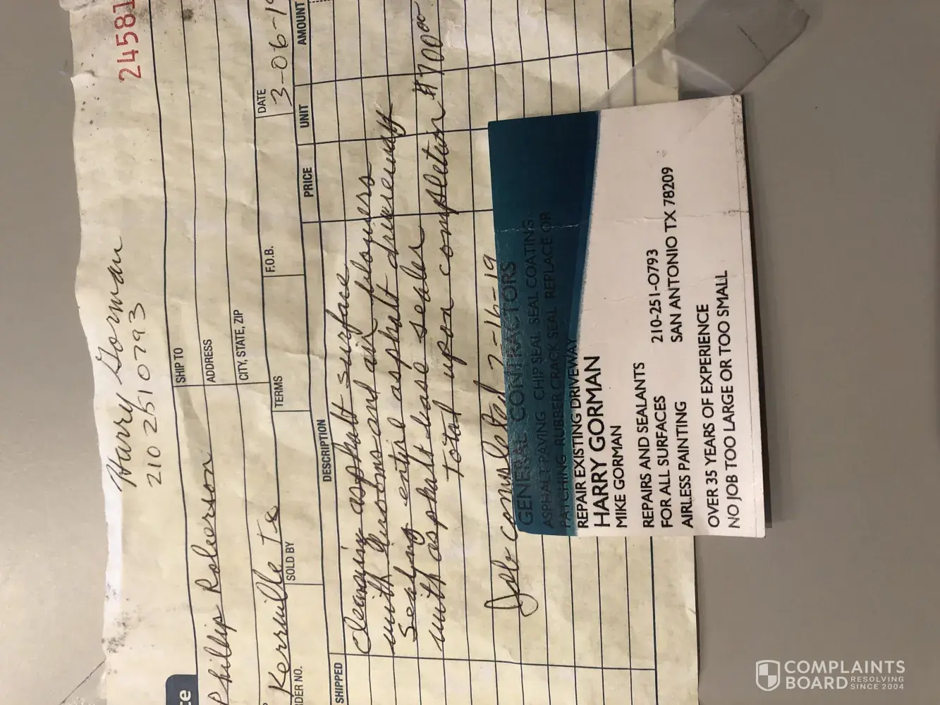 On 2:15/18 a young man approached me outside my home in Kerrville, d dad addTexas, asking if I wanted my driveway sealed. I told him I would like a written estimate but that I would NOT have the work done now due to travel plans. He measured and gave me a verbal estimate and said his dad would stop by the next morning with a written estimate. The next...