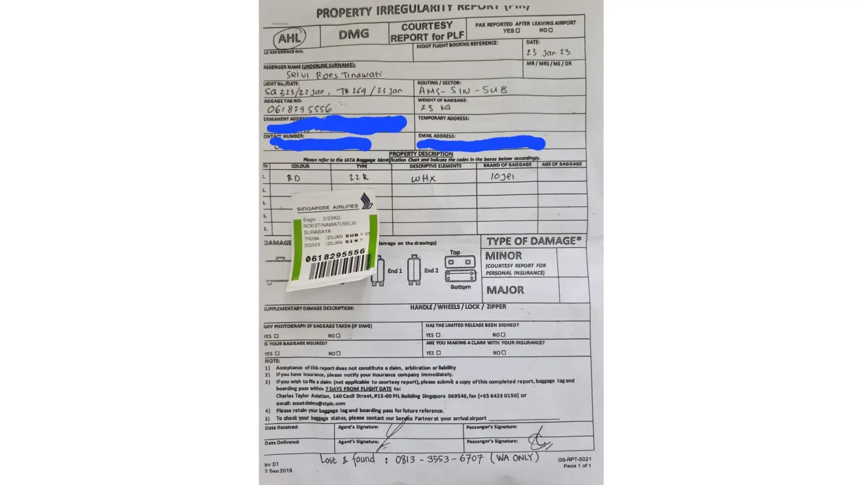 Claimed loss: $S 3046 Scoot flight $S 2200 + $S 846 (car rent + Homestay)