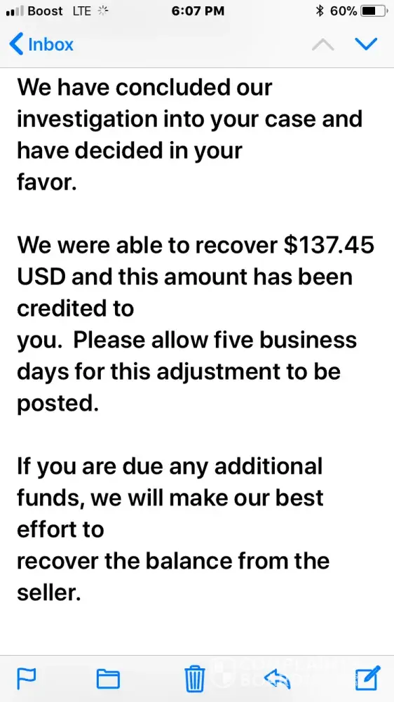 I have filed a complaint with the BBB and if it cannot be resolved through them I will be taking them to small claims court.There is no accountability within this company and they continually make excuses eventually ceasing contact with you to avoid any confrontation or potential positive outcome.