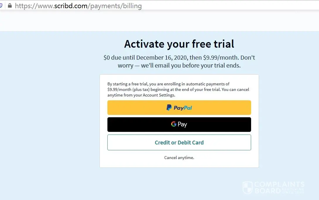 As you will see from the many posters, Scribd has some way of signing up people's cards for auto-billing even when they have no idea what the service is. The same is true for me. They will deny it in a response below, but they are liars. I'm pretty sure I would know if I registered for their service. I do not even listen to audio books. I have asked my credit card company for a chargeback based on fraudulent charges.