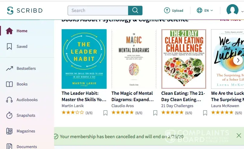 I recently noticed my Scribd subscription was not cancelled and Scribd has been charging me for a year despite sending me an email confirmation that my account was closed.