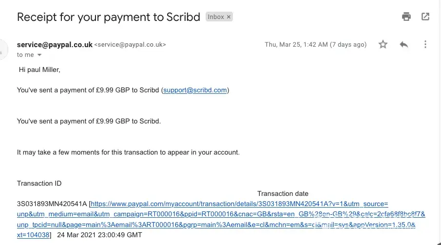 Today, I received a notice from Paypal I sent a payment to Scribd. I disputed with Paypal and they said it was authorized.