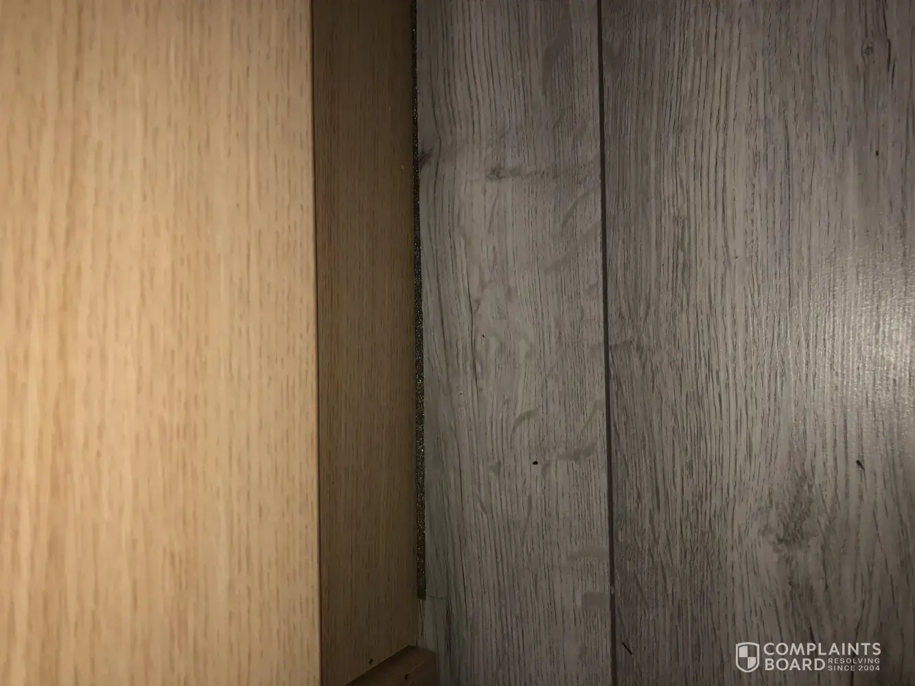 Laminate fitter didn't fit the wooden trimming between laminate and carpet, carpet fitter said he does not fit these only if they are metal. Laminate fitter called to come and fit but on holiday till after the new year. T bar was to be fitted on 23rd Feb, but this had been measured too short.