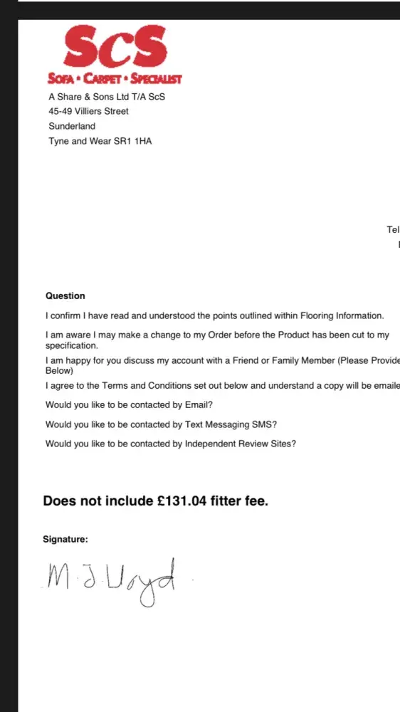 I contacted SCS on the 28/02/20, SCS provided me with the fitters contact details. He was supposed to call before 11am to confirm the fitting. I initiated contact, he advised me he would call after 2pm to arrange fitting. I attempted to contact the fitter three times after 2pm no answer. I called SCS; they advised the job will be completed before 8pm. I received no further contact and the carpet is still not fitted.