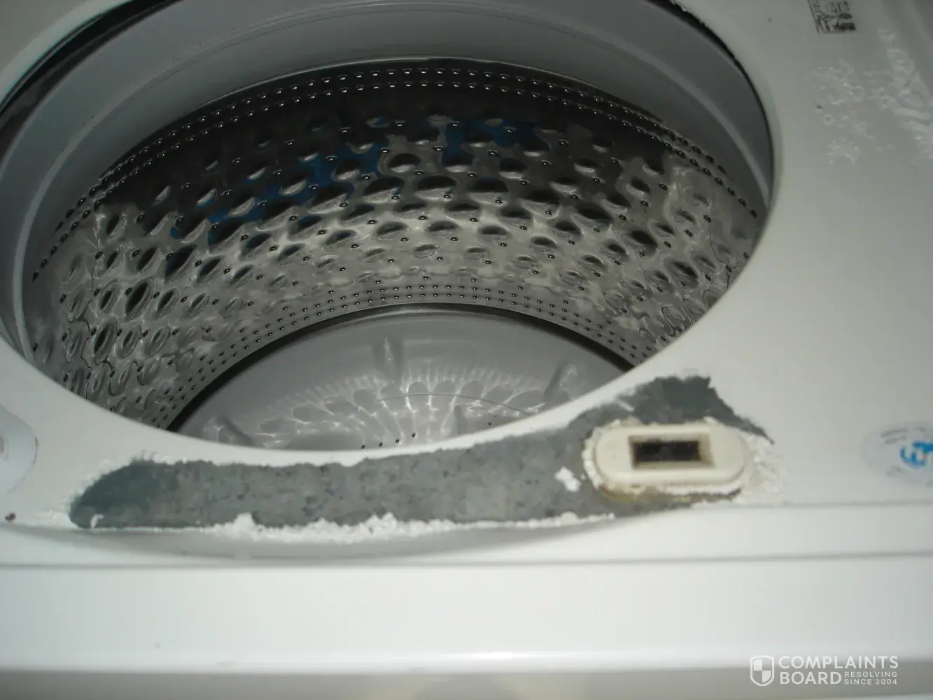 I purchased a Kenmore HE low water washer in 2015 from Sears and within one year the paint on the interior of the lid and the loading area began to bubble. Now the paint is just peeling right off. The warranty doesn't cover cosmetics which this is considered. The paint is not baked enamel on as done with appliances of the past. It seems to be more of a spray on job.
