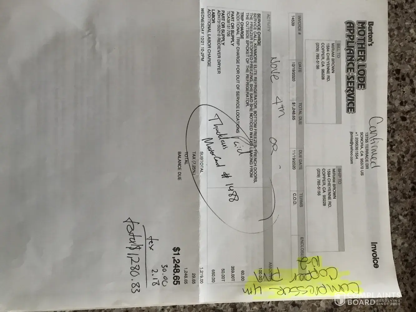 I would like my credit card to be credited for the charges to attempt to fix my ice maker. $500 ish