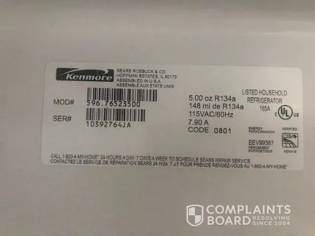 Sears Kenmore Elite Refrigerator compressor failure/claim