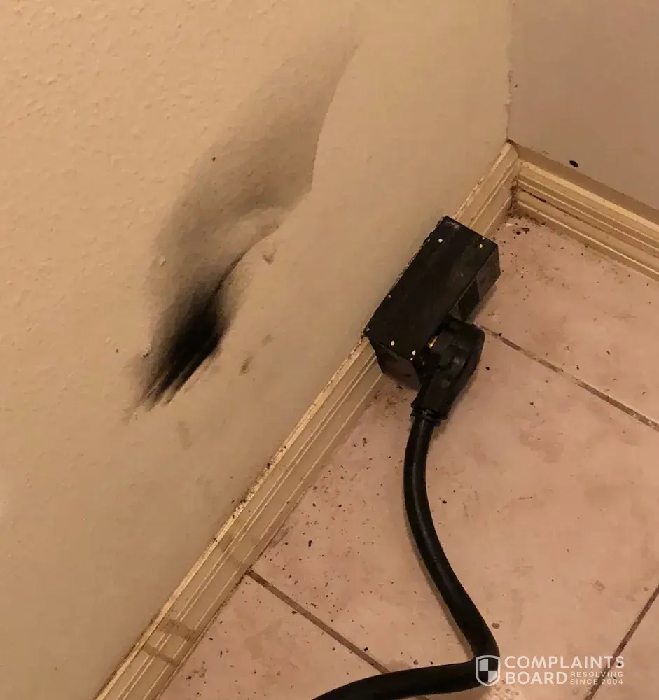 Attachments: Picture of damage wall and electric range, receipt of range, and case number #5566129 provided by the customer care personnel Paul.