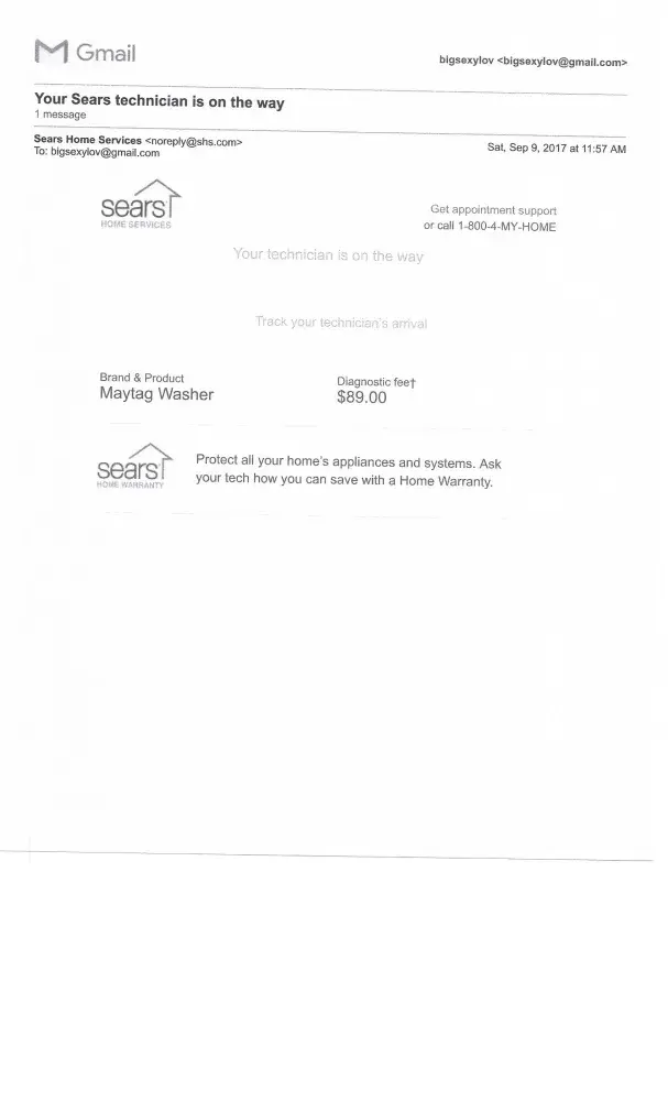 sears home service - diagnostic appointment