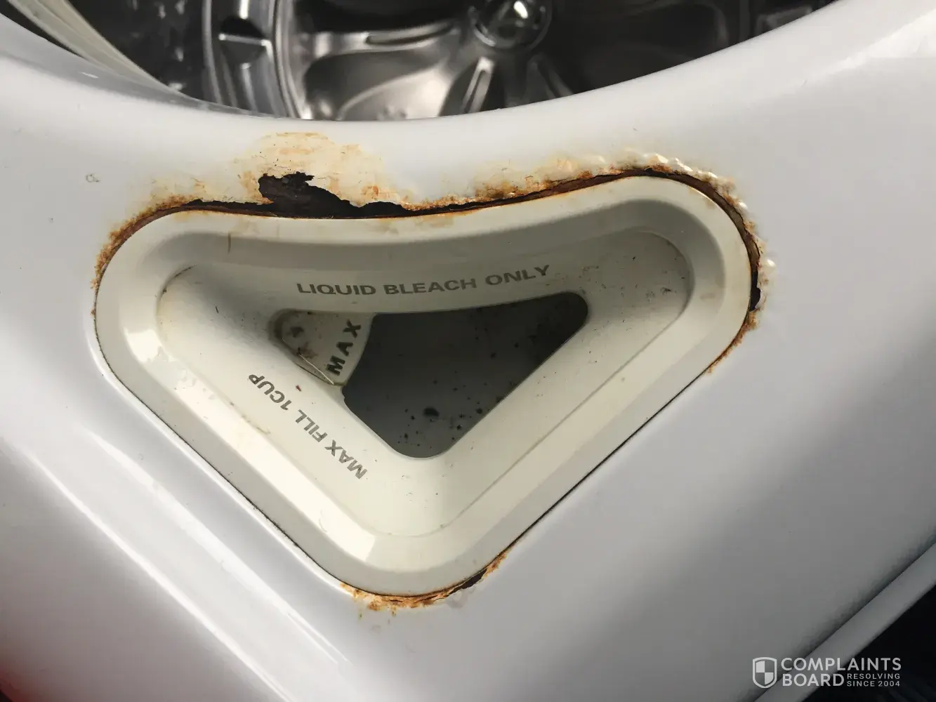 It started rusting around bleach dispenser this past year and even the hinges are rusting some. Sears will not stand behind their product saying this is a cosmetic complaint but looking online there are so...many of the same complaints that it is more like a manufacturer defect. Even the inside of the top around the barrel has a rusted area. The sears guys came and said if you even used bleach in it once this would happen. I only used it twice in the past 4 1/2 years. And if its called a bleach dispenser that is what it is supposed to be used for...right? Totally disappointed and will not buy from Sears again.
