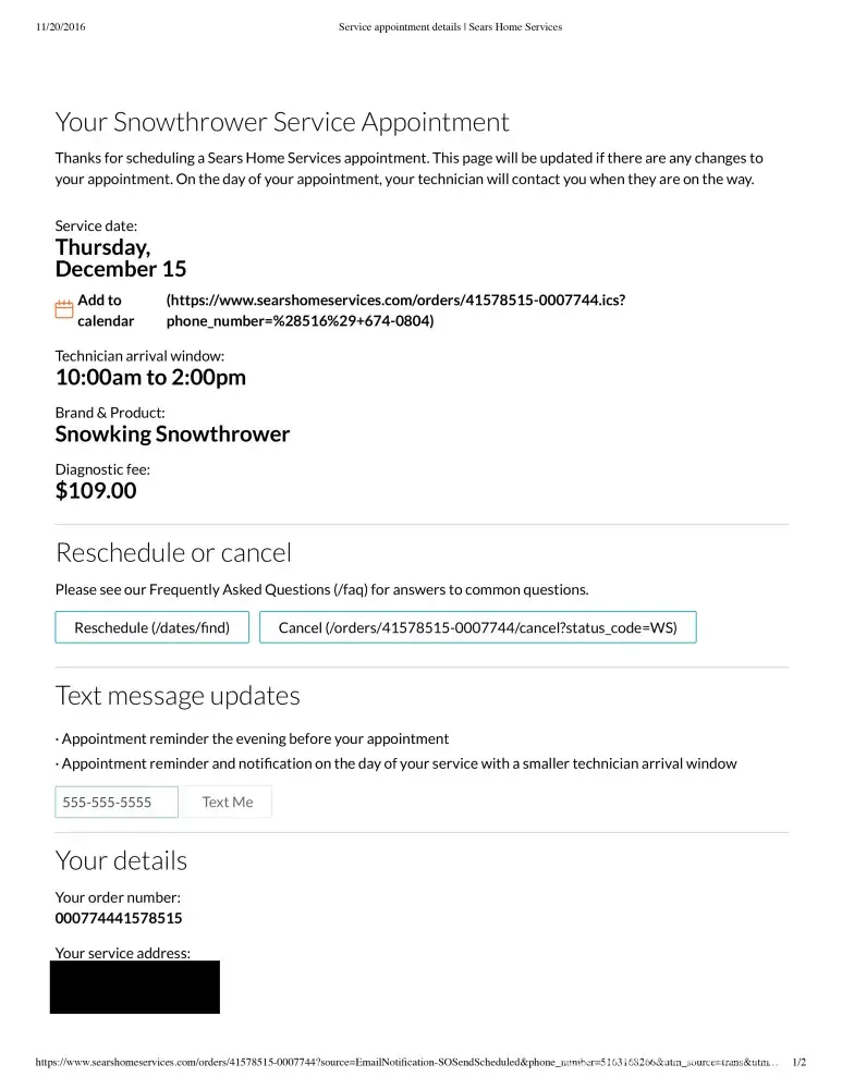 I hired sears home maintenance for a snow blower maintenance service. It was to include:check ignition system, carburetor, throttle, and choke controls. Clean engine cooling fins. Change oil. Check manual starter and electric starter if so equipped. Replace spark plug. Lubricate moving parts: pivot points, cables, auger shaft, and drive plate zerk. Lubricate, inspect, and adjust drive belts and/or chains as applicabletest overall operation of equipment and ensure that all safety features are fully operational at the time of service. Oil is included. Replacement parts, repair service, labor for repairs and tax are additional.