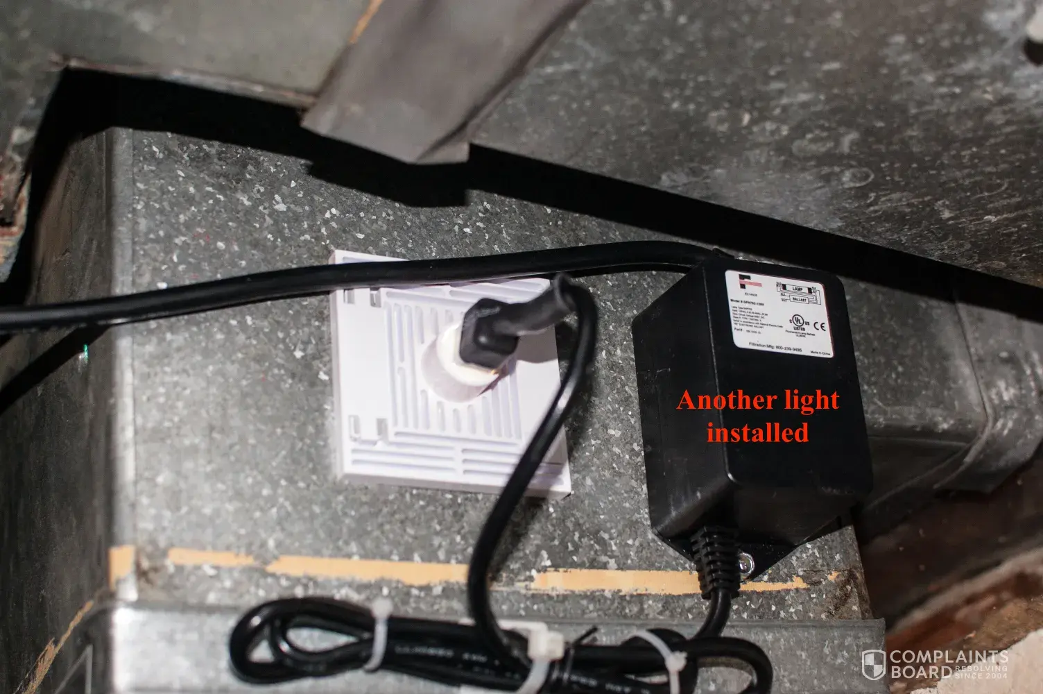 He showed me the images of "field controls uv aire" system (See attached photos) and I went for option (3) to have two uv lights installed to make sure that my new house is free of rust and mold. Only later I found that the lights installed are not the same as those in the images that he showed me. The lights installed are from an unknown brand that I cannot find online. Besides, field controls uv aire is only $180 per unit. I am charged for $700. This is clearly a rip off. I was charged for $1400 for a pair of lights (Unknown brand) that costs less than $400.