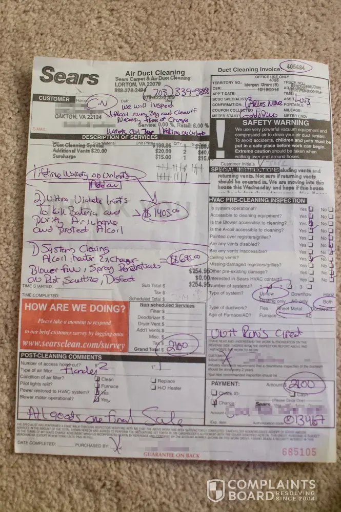Sears duct cleaners came on dec 13th, 2016 to my new house that I just purchased the day before. I have not yet had internet access in the house at the time, otherwise I would search online before I make the decision. Apparently I am not the only victim of scam like this (See links below).