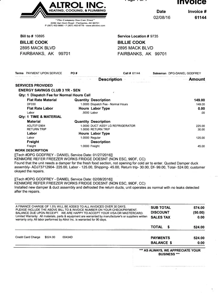 2. The woman who came on the line again took all the information and said she wanted to check what happened. She told me the tech called in sick.