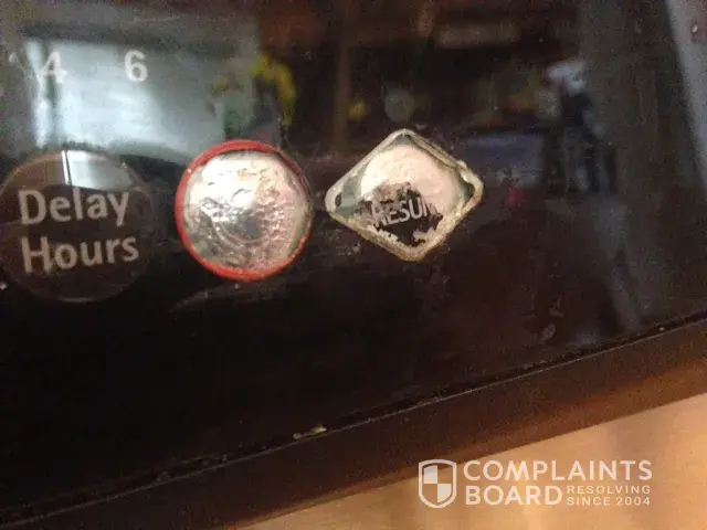 Same problem. Cheap plastic face on control panel, very stupid design. We had similar problems with the installation and, later, a repair to that installation - contractors not showing up, no calls, days of work lost waiting for no one. When we bought our house, I bought everything Sears. Very sad to say that Sears of China is no longer an option for us. I really wanted to see Sears survive, but I'm not holding my breath. I also notice that there is no longer any sign of "Sears Cares" on this site. Sears was once a proud name with a long history of excellent products and service. Now it's barely a joke.