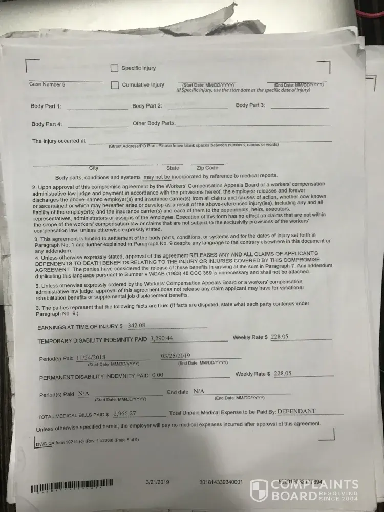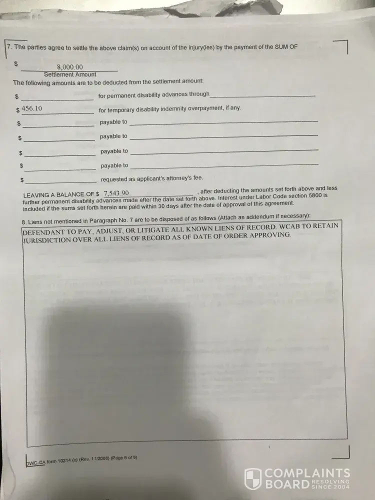 workers compensation insurance claims check for $8000 I have still not received via mail or direct deposited.