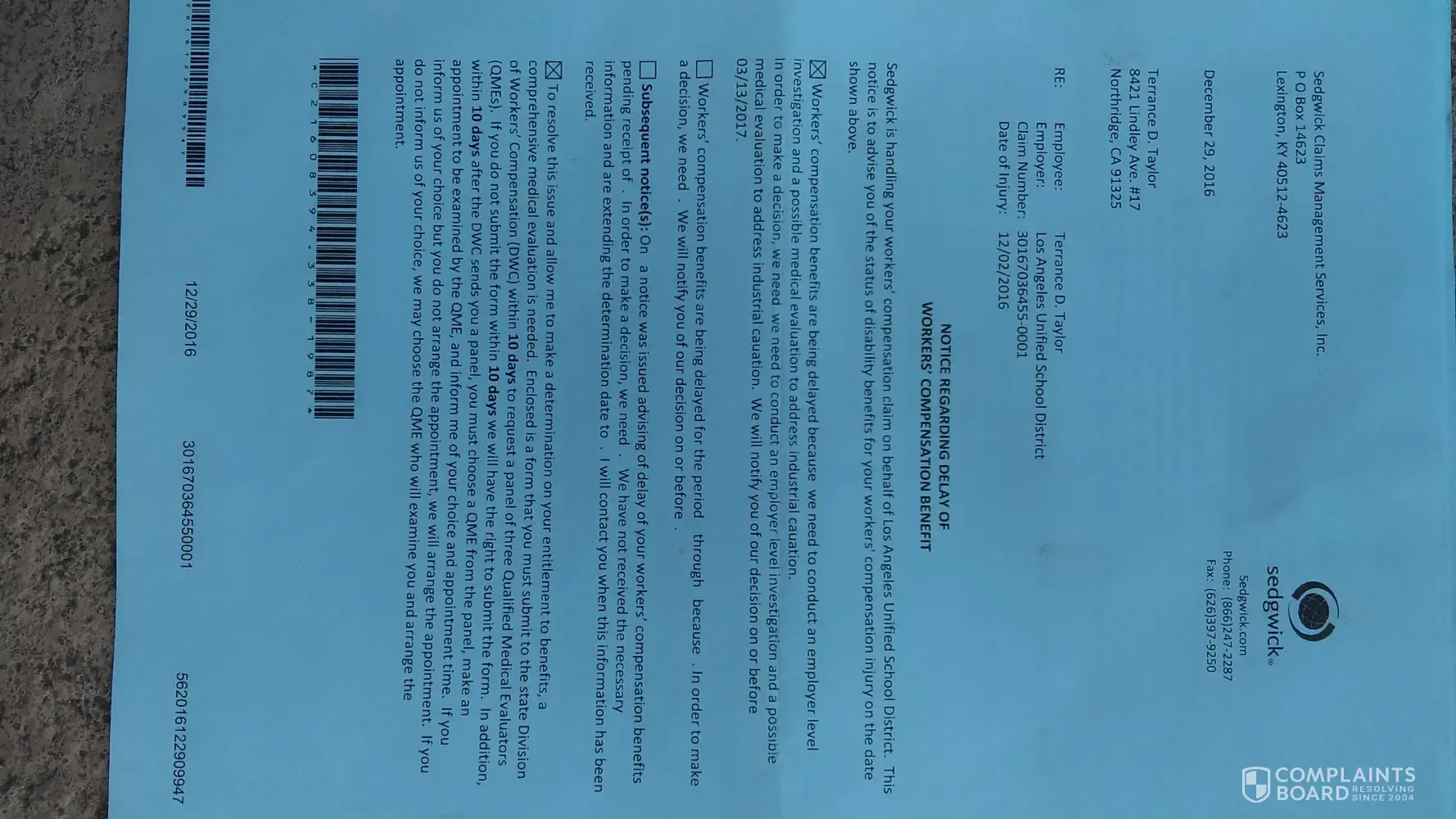 Sedgwick Claims Management Services Complaints Page 14 of 20