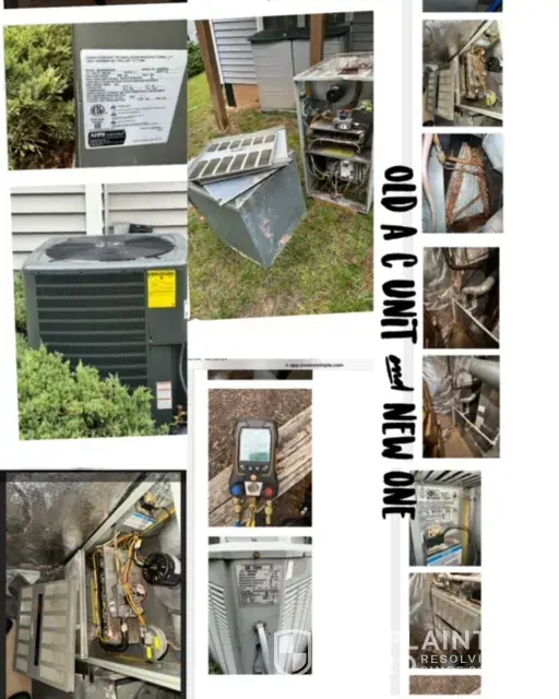 Below are photos of the old a/c and heating unit along with the new one we need to be reimbursed for in the amount of $10,350.00.
