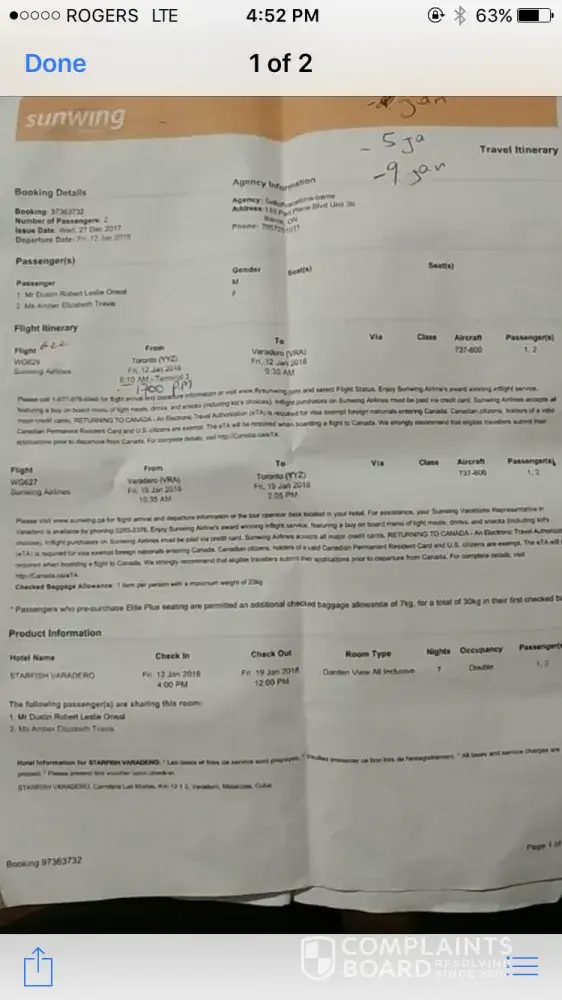 Me and my daughter recently booked a vacation through Selloffvacations.com booking with Sunwing Airlines and we are disappointed with a lack of communication. I feel we were grossly misled.