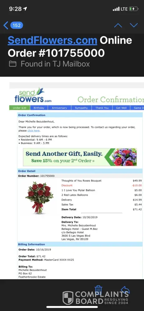 It's a shame I did not see the complaints listed for "send flowers".