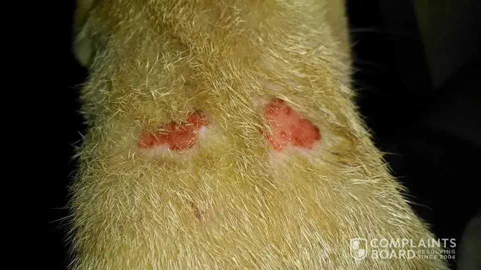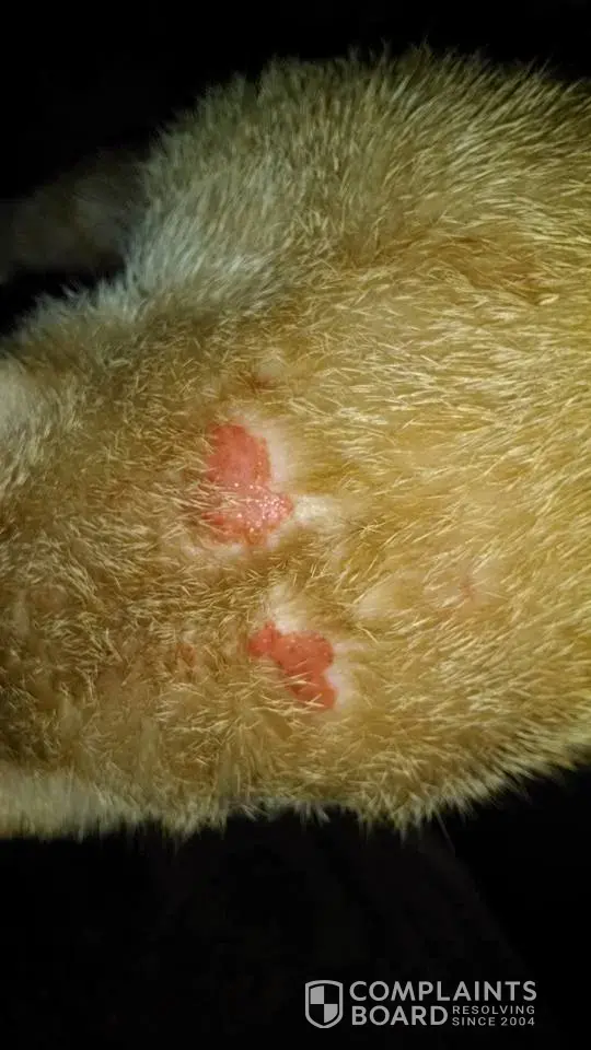 I took the collar off when i noticed it a few days ago But the main issue is liver damage I had also bought the Cat Drops for 5lb and over and haven't used it yet i had wanted to give the cat time so she didn't get too much and was going to apply like a week later IDK now Have any of you had this issue