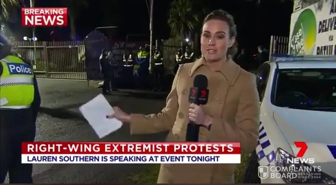 There was a report done from the speaking event of Lauren Southern in Broadmeadows, Melbourne last night. The reporter claimed that Ms Southern said she is a racist and a fascist. This was written on a banner on the bottom of screen as well. This claim is completely false. It is disgraceful that Channel 7 would allow such a gross misrepresentation. I expect that Channel 7 withdraw this claim and issue an apology to Lauren Southern. The event was attacked by violent protesters from left wing organisations who sought to stop reasonable people from listening to speakers they were interested in. Not one attendee partook in any violence or disruptive behaviour and this should be reported instead of the insinuation that attendees are extremists. I was an attendee and I am not an extremist. The only extremists there were the relatively small group of protesters.