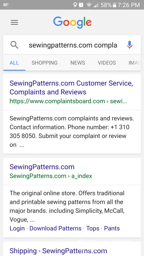 Read full complaintSewingPatterns.com complaints: history and resolution overview