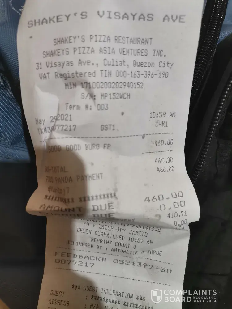 This is such a hilarious service of shakeys.! I will send screenshots for your reference. Note: I received an email from your call center telling me that they have not captured the recepient details around 9:21am.. And read your email 10:40am since I dont usually open my email. You could have called me to reach out asap! But you never did. What if I have not check on my email. Please do investigate about this! Very disappoiting bad experience from you.