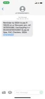I made an arrangement with SSDA on their insistence to instill a monthly debit order, a change from the usual monthly EFT payments that I made. The first month went good and well and that is as far is it went. From there on, only downhill.