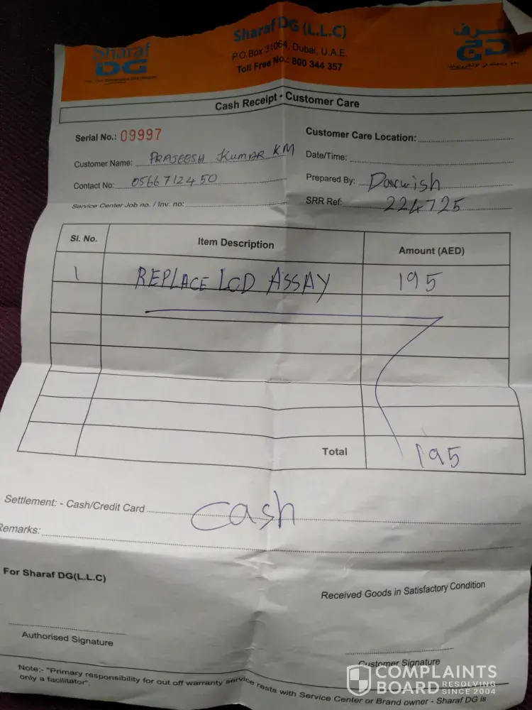 Unfortunately, when my phone actually got damaged and I approached the customer service desk asking for replacement as promised I was informed that I must damage the phone completely by driving my vehicle over it a couple of times to seek replacement, however, I was not ready to cheat Sharaf DG and was instead happy to have my phone repaired instead.