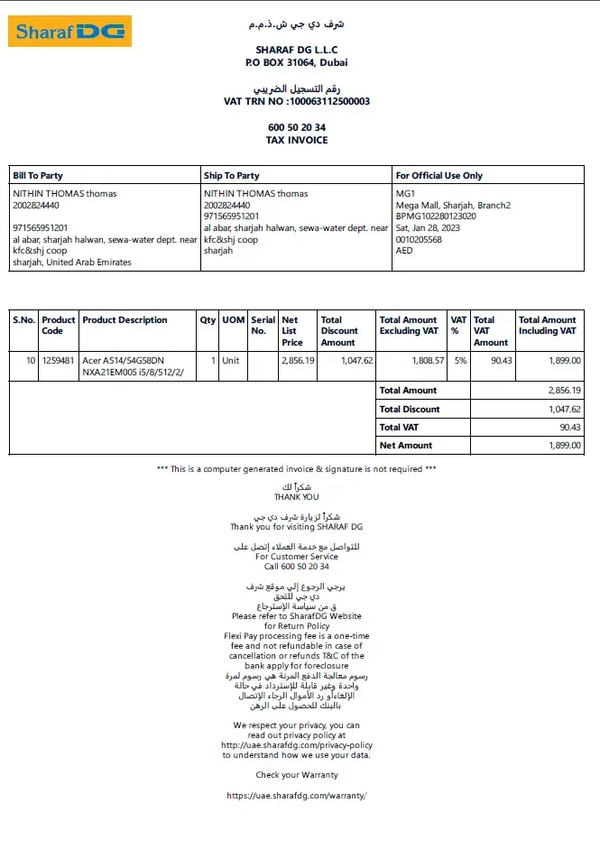 [11:55 am, 03/02/2023] Sharaf Dg: For any further concerns please feel free to chat with us at Sharafdg.com. Thank you for choosing Sharaf DG.