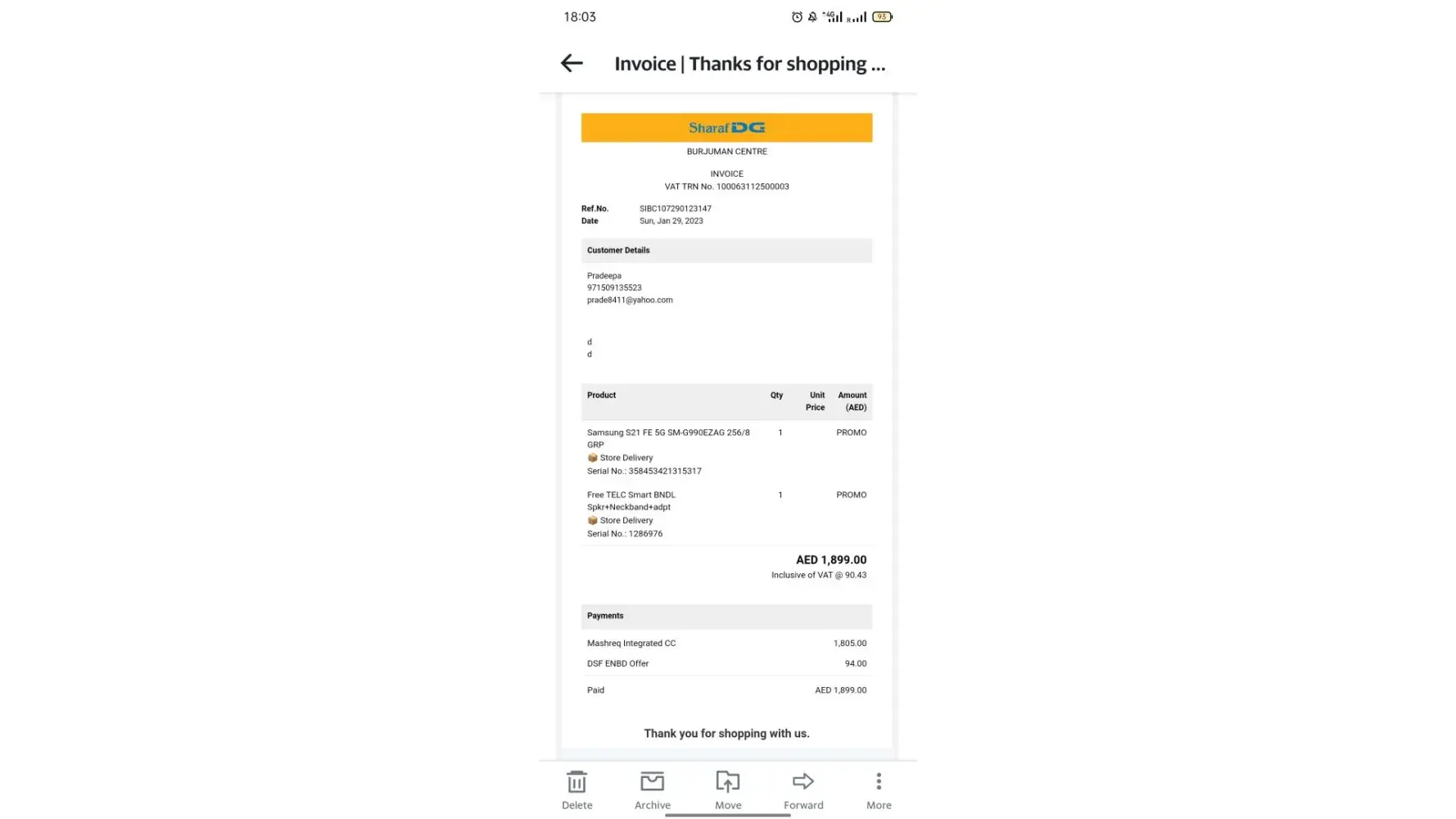 Hi Sharaf DG, I lost my bill of my 64gb gold iPad Air i purchased on 5th April 2015 in Deira City center Sharaf dg when I relocated to India after I lost my job in 2020 during covid.I am not able to unlock my iPad as I forgot my pasword .I need a copy of the original bill to get in touch with apple support.