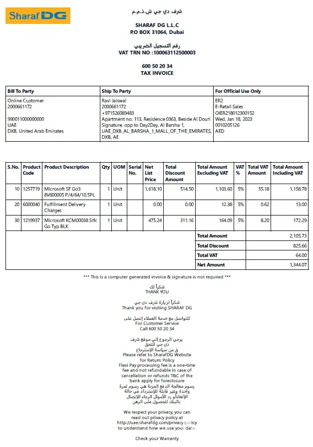 I ordered the surface go 3 4gb/64gb variant from sharaf dg online under the old laptop exchange offer, after receiving the device I realize the performance of the laptop is low and sluggish. I raised a request 6 days back to return the product and allow me to buy another laptop, but there is no update or reply or call back from customer service. Every time when I call them they have some recorded message and no solution is provided. Sharaf dg is good at stores but their online market e-commerce service is worst and they need to learn how other e-commerce businesses are doing. I will advise others to refrain from ordering anything from sharaf dg online. Worst people & services to deal with. Better to go with noon or amazon.