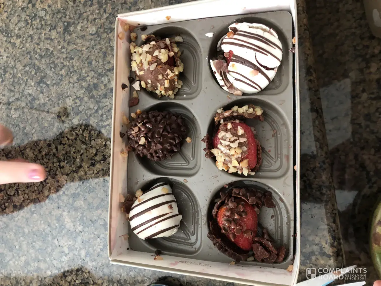 I ordered 1 dozen berries to Mt Vernon WA to be delivered on Sept 18th 2018. They looked beautiful but were spoiled. We had a Surprise Birthday Party for my mother's 85th birthday. I displayed the berries on a platter, and juices from the berries escaped. Fruit flies were all over the dining room. I broke one open, and the berry was translucent like with more liquid coming out. Embarrassing for us and disappointed. Have ordered several times in the past and have not had a problem. I think this was an exception, would like a refund . Live in Milwaukie Or. Please contact our email if you need more information. alopaki.[protected]@gmail.com