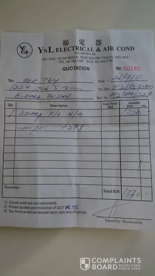 Solely technical explanation make no different to the failure system. What I wish to hear from SHARP are the firm concrete solution and solution's timeline. I will not hesitate to refer this issue to tribunal court, media or even to higher relevant authorities if there is no response from SHARP on solution action. Attached herewith the receipt of purchased and pictures as evidence proof on my claim. Your prompt actions are appreciated.