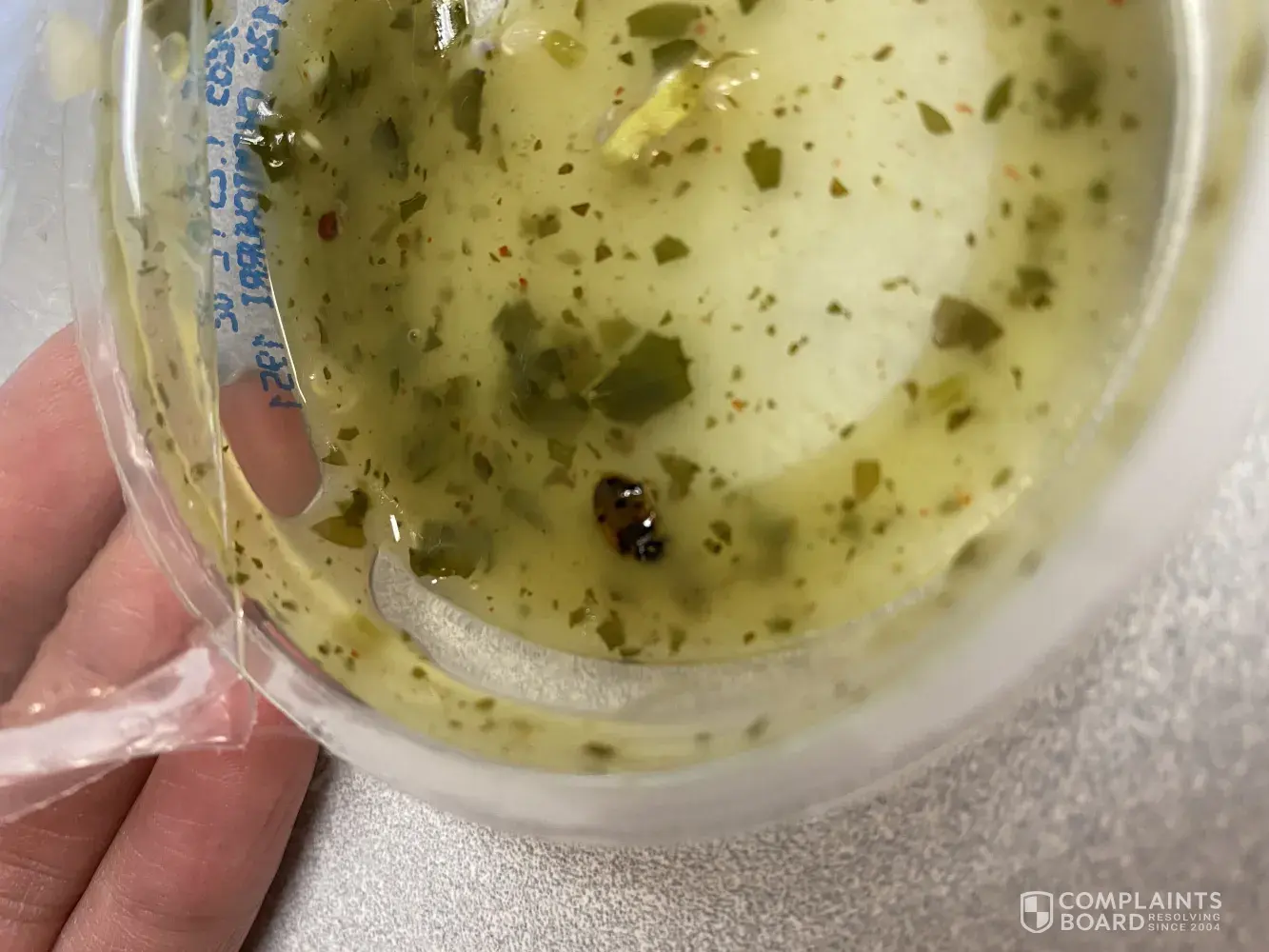 Date of Incident: 1/14/2020 Client: Angel Lam [protected] Email: [protected]@gmail.com As I was eating a pre-packaged salad that was bought from the veggie/produce aisle the night before (1/13/2020), I noticed there was a dead ladybug in the dressing container provided. I immediately threw out the rest, however I have already eating about 90% of the salad...
