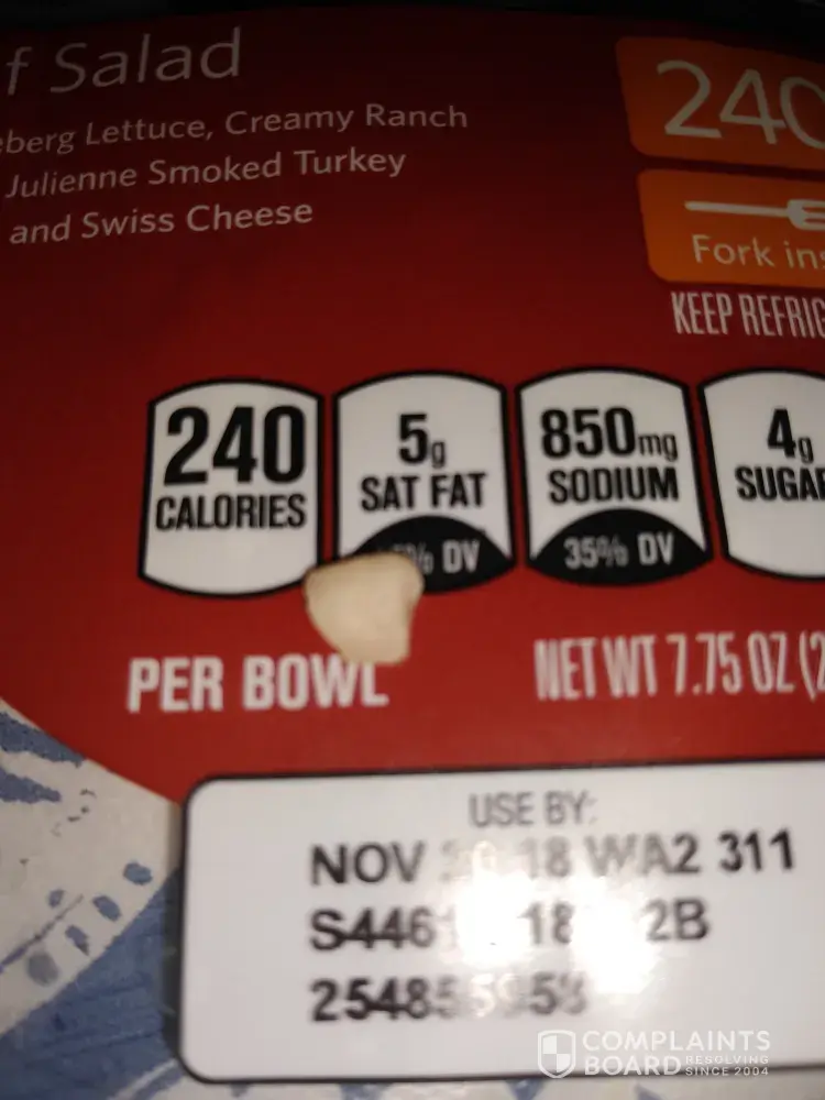 I purchased the signature farms Cafe bowl from the Shaw's location in Shrewsbury and there was a hard piece that almost looks like a bone in my salad I took a picture of the object