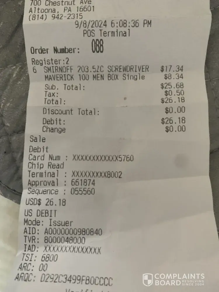 I was at Sheetz in Grove City pa today (11/22/2023). I ordered my lunch and proceeded to checkout. I was asked if I needed anything else, which I appreciated because I had forgotten to pick up a pack of cigarettes earlier today. When I ran my debit card and the cashier asked me if I needed my receipt I looked down to collect my cigarettes and drink and...