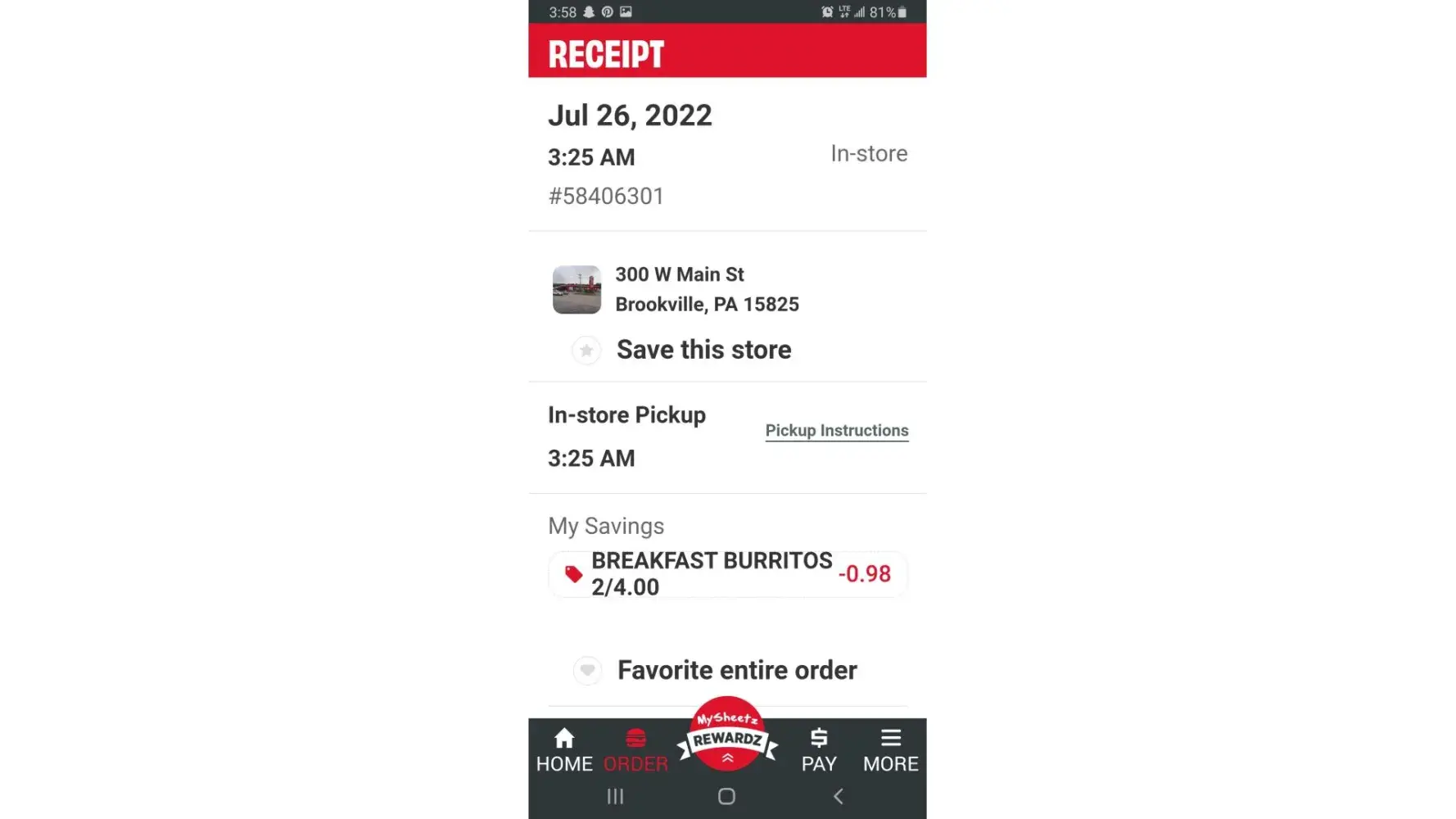I ordered my sub toasted but didn’t want it toasted so much that I couldn’t bite it. It was put together very sloppy and I asked for mayonnaise on it but it wasn’t there. I rarely order food from Sheetz and now I know why. What a waste of money!