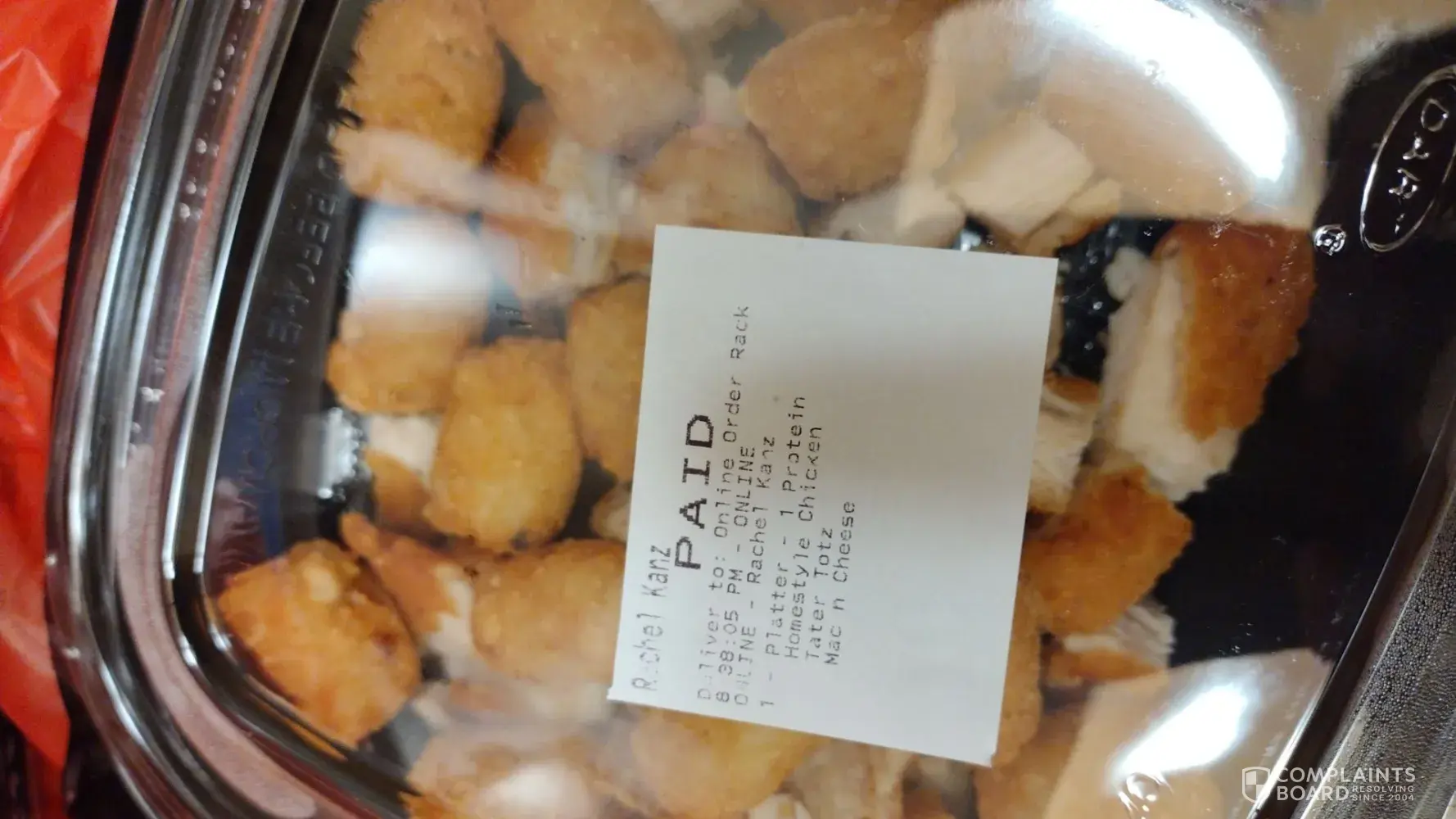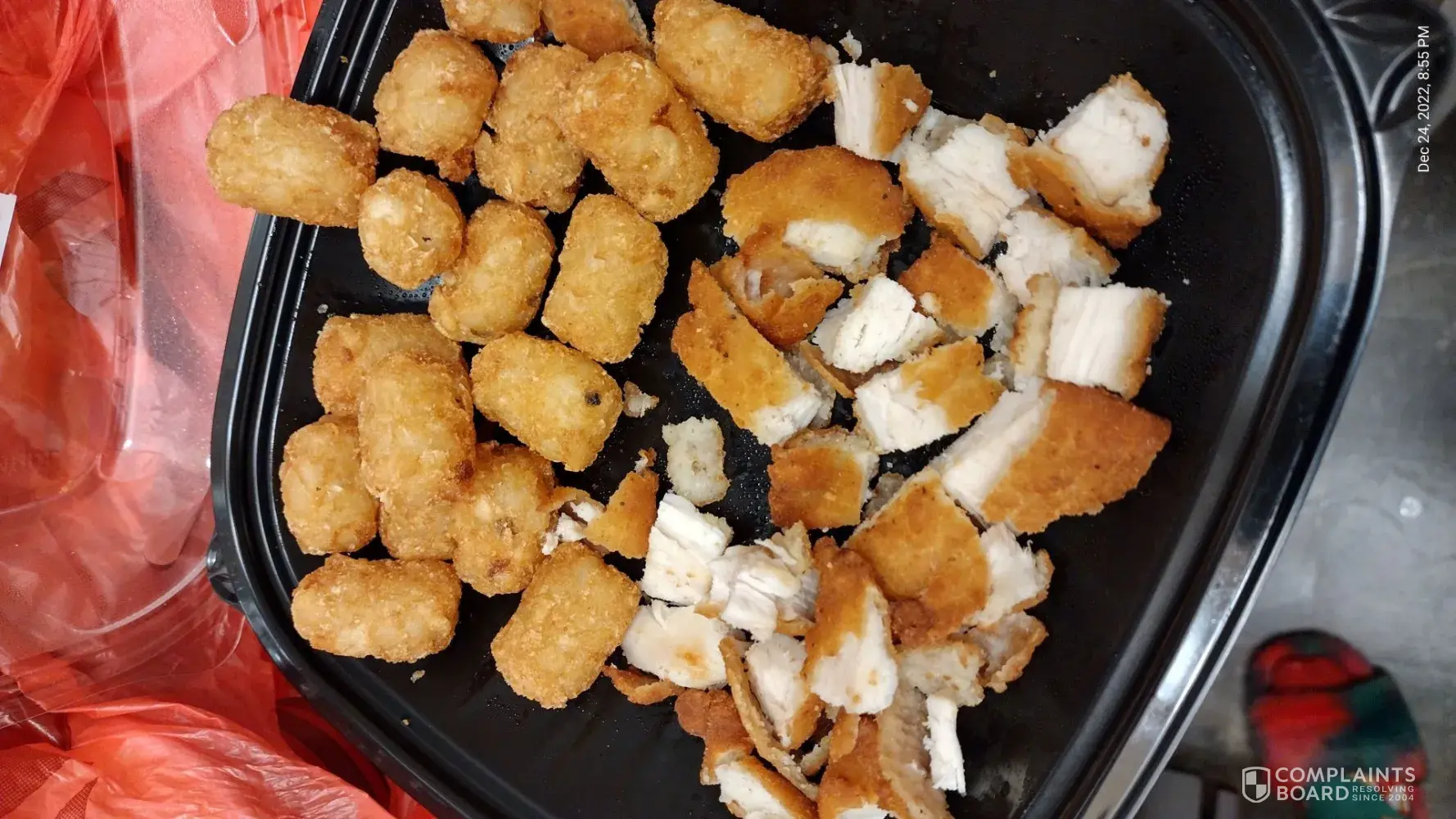 I came into the south Bloomfield store on 12/24/22 at approximately 8:45pm to pick up two chicken platters. One homestyle one strips. I got home and opened the boxes and was absolutely appalled at what I saw. Both "platters"contained their respective sides but the chicken in both boxes was chopped up like it was being served to a toddler. There definitely was not anywhere near the amount of chicken in either of them. I do feel that they did this to make it "appear" there was a decent amount in there. I do have pictures as well.