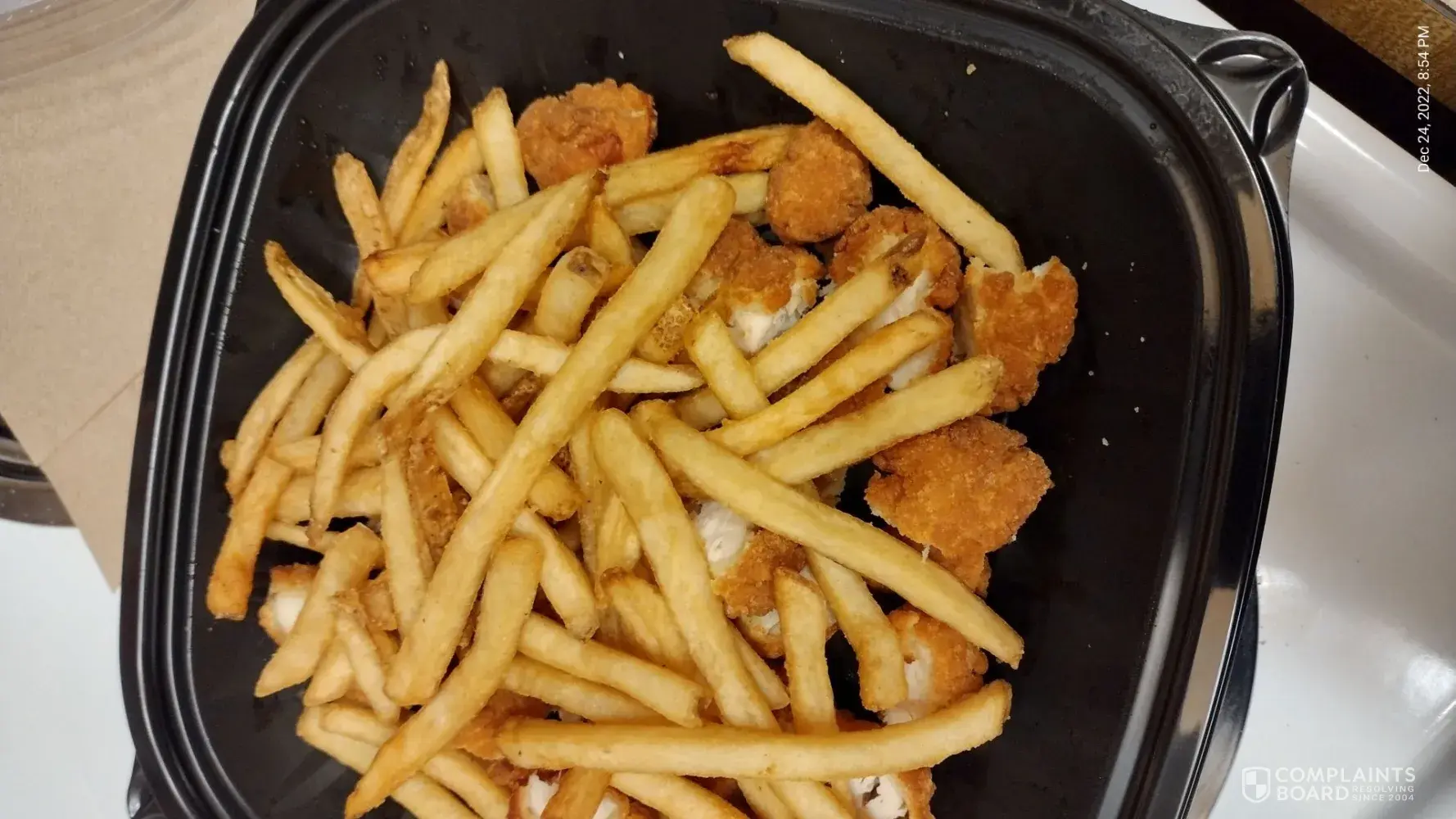 it’s 12/27/22 and i went and ordered some food , moterella sticks , 2 boom boom mac , chicken tossed with garlic , and once again the person making the food at this time , threw whole entire patty’s of chicken in the mac , and it’s disappointing, my order number is 853 , i’ve took pictures of everything i’m gonna say something next time i go there , becuz it’s kinda ridiculous that this has happened about 3 times and it’s the same employee that does it every time , every time , i wasn’t able to catch his name i’m not even sure if he had a name tag , he doesn’t even say anything when he hands me my food witch i think is kinda rude a little bit when it comes to service .