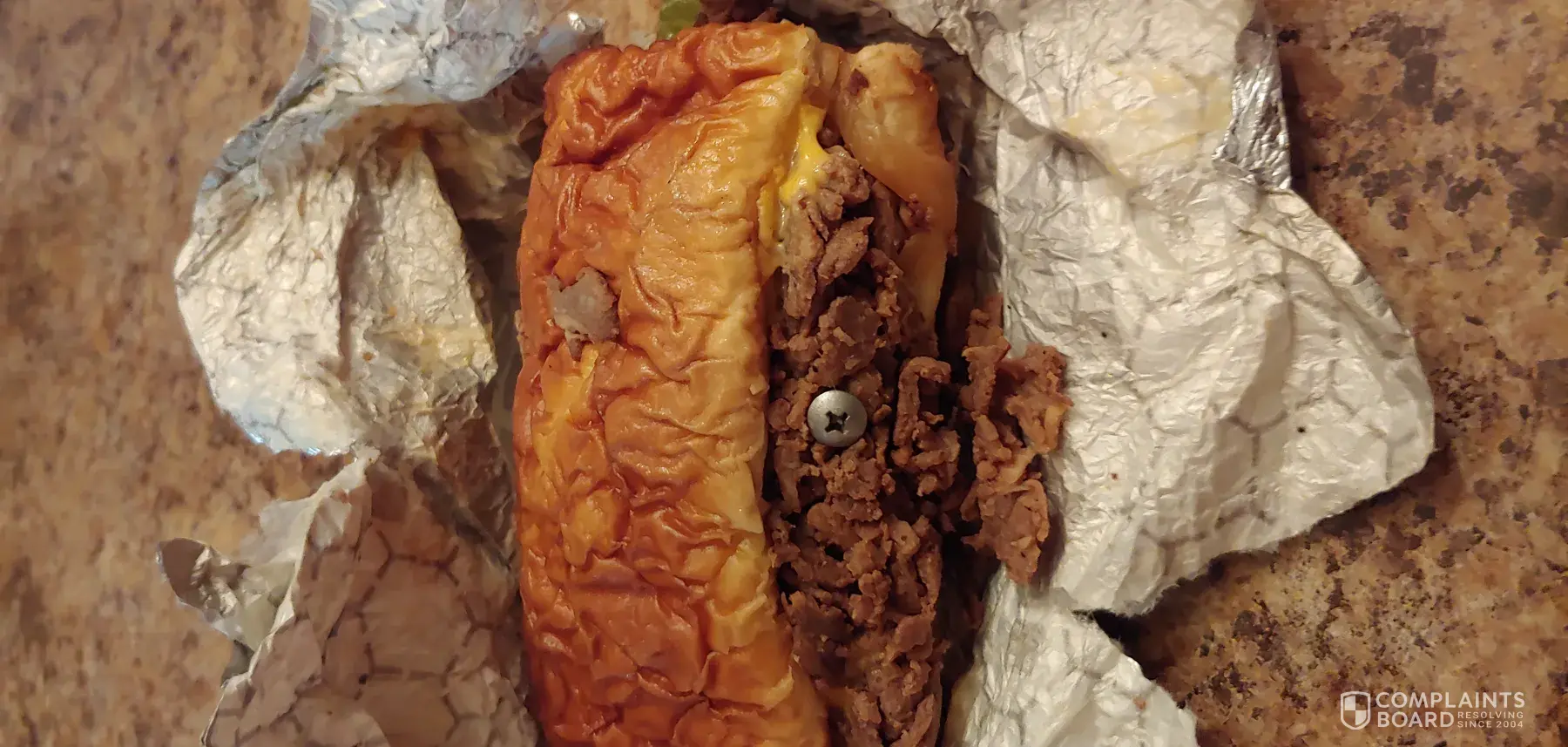 I purchased a steak hoagie from sheetz located on route 21 in Pennsylvania. When I opened my sandwich I found a screw in it which apparently came from the machine. I don't understand why the person who wrapped the sandwich did not see the screw. I would like to be compensated for this inconvenience. I was on my lunch break at the time and did not have time to purchase lunch from another restaurant. You can contact me at [protected]. Thank you.