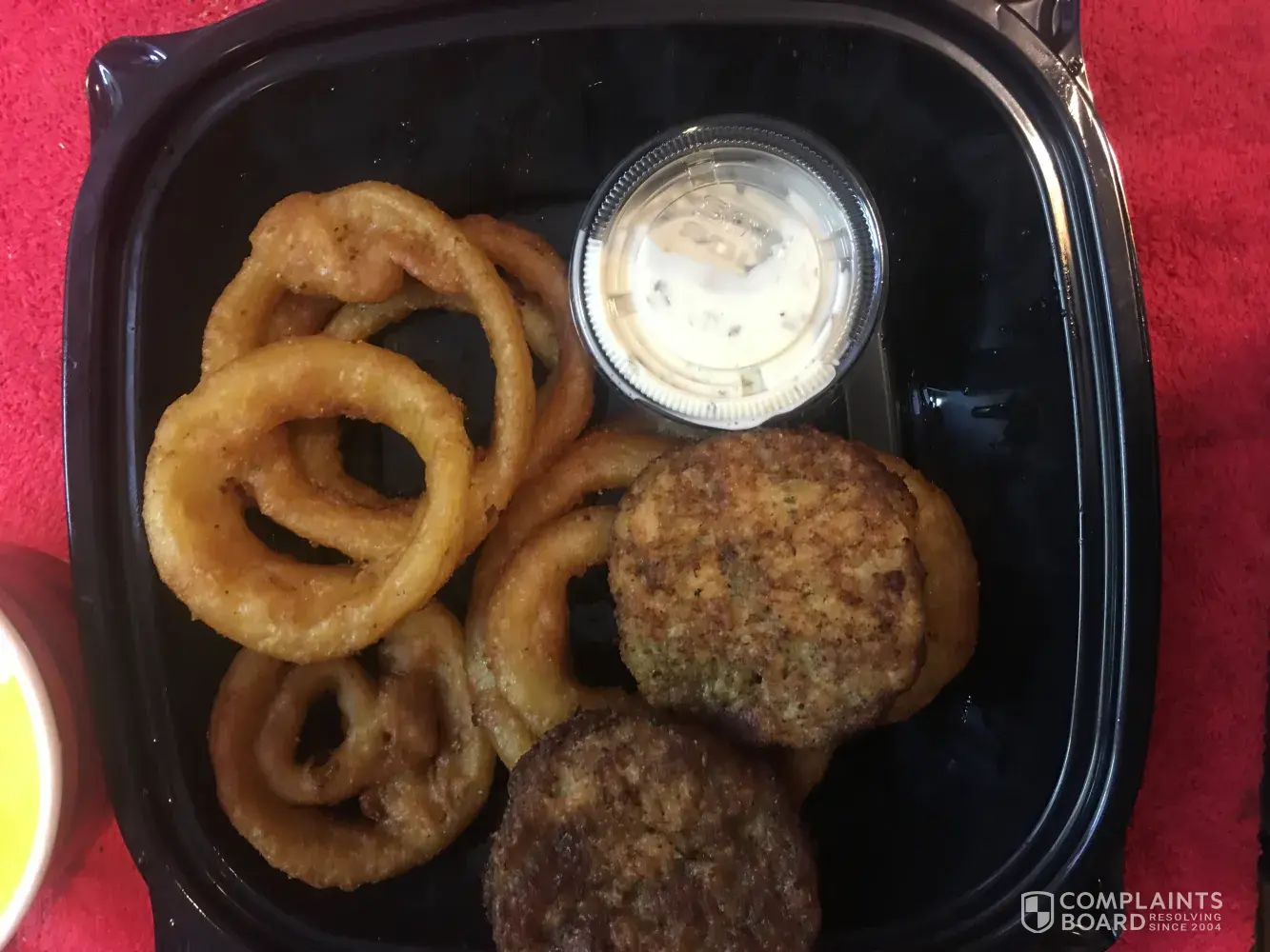 Went to Sheetz for supper tonight, saw the crab cake platter advertisement, looked pretty awesome in size.In the advertisement the crab cake looked like a large portion, so for my dipping sauce I got tartar sauce and bought the extra sauce too.Took it home opened the container and the crab cakes were smaller than the little dipping container.Unreal!